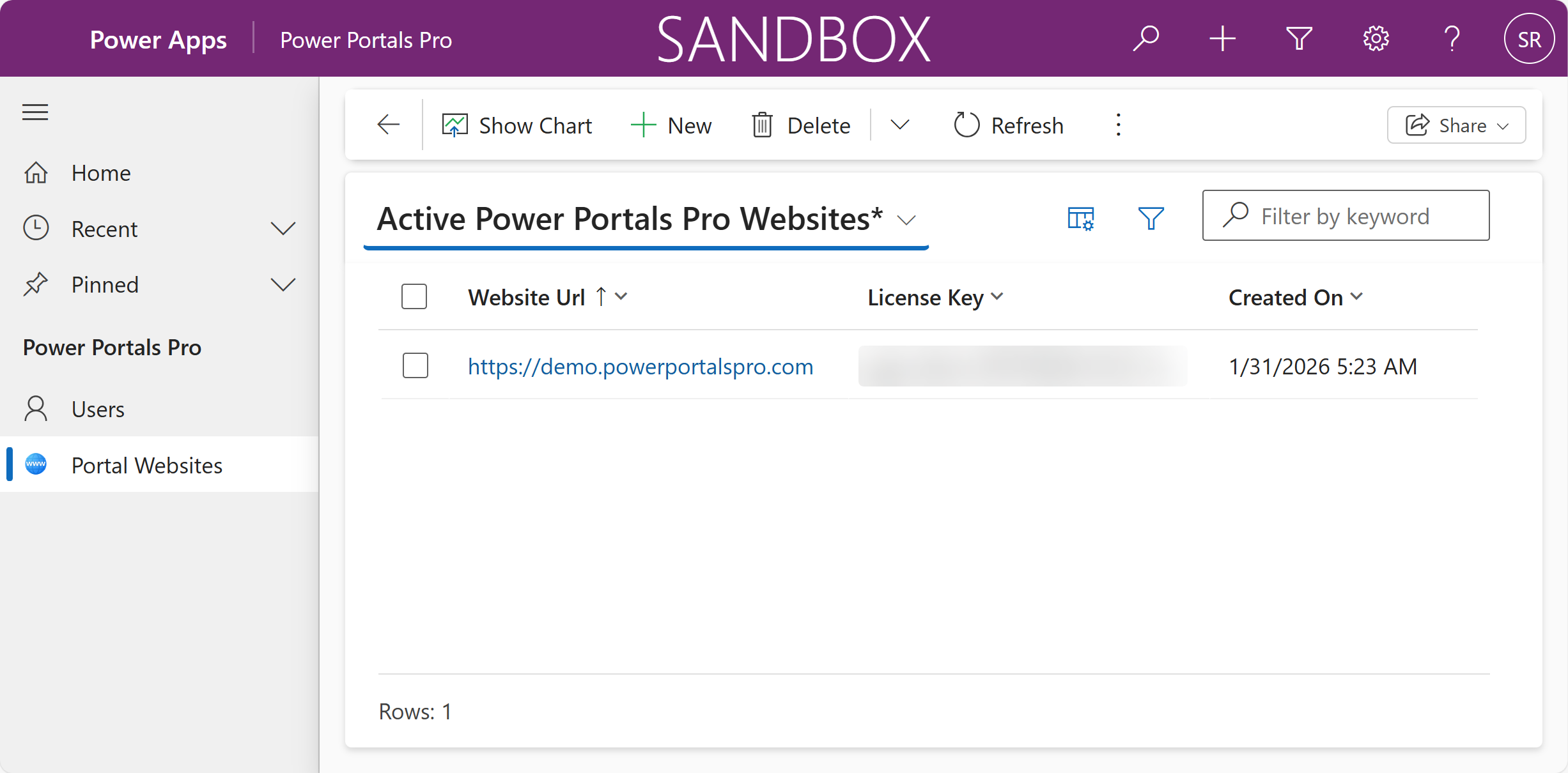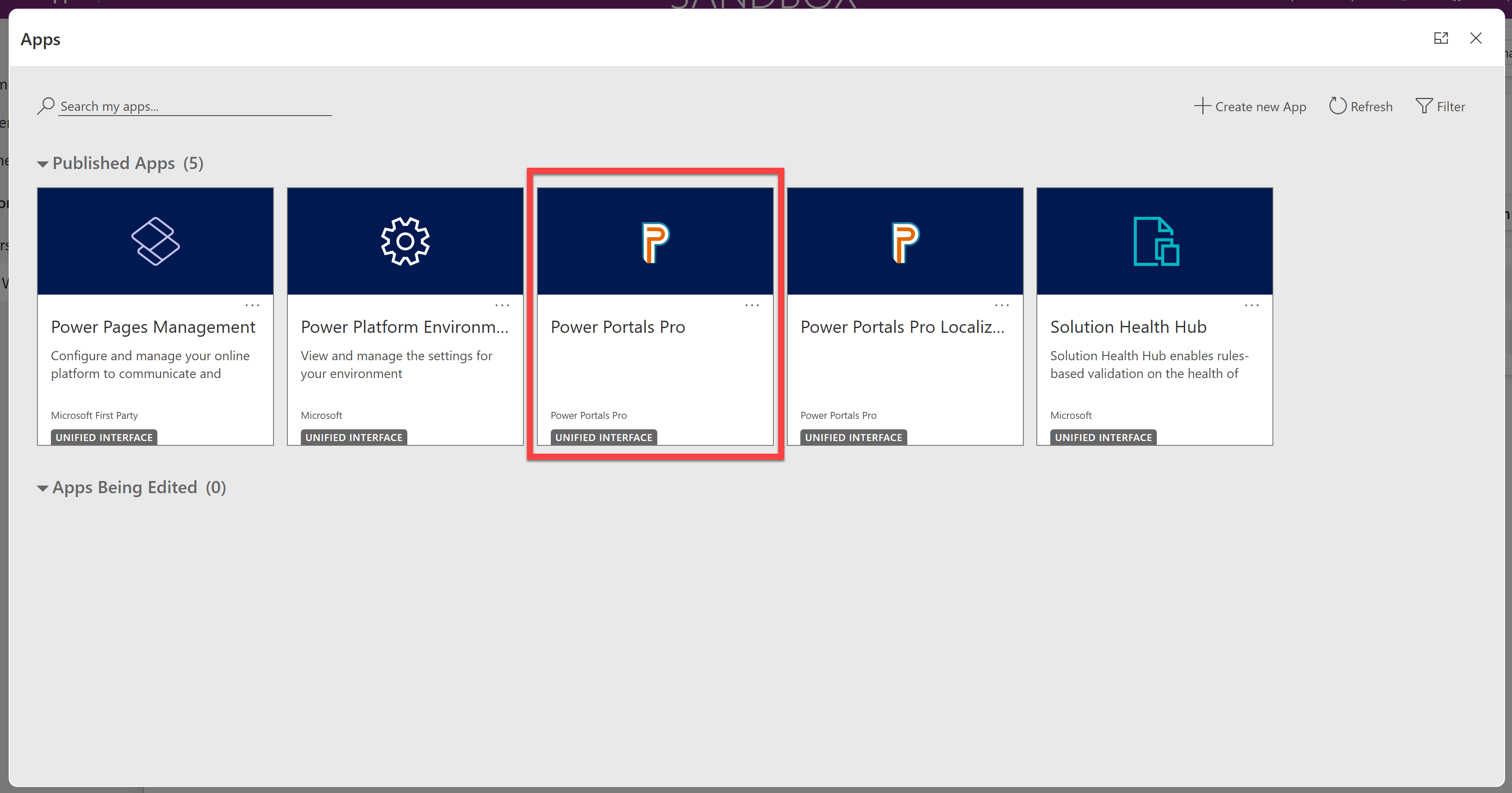 Navigate to the 'Power Portals Pro' app in your environment: